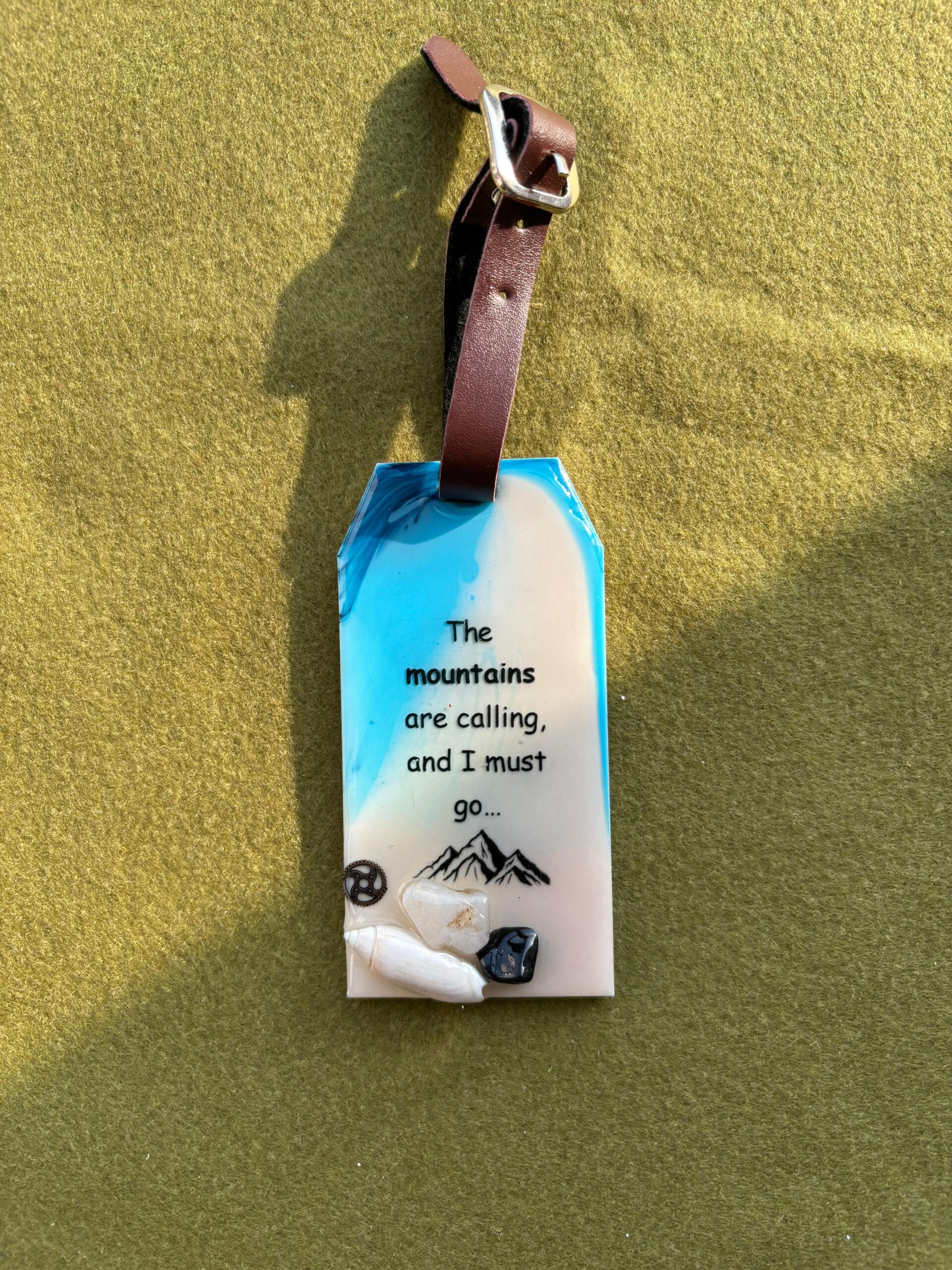 Spot your gear with this robust resin tag, a tribute to the call of the peaks.