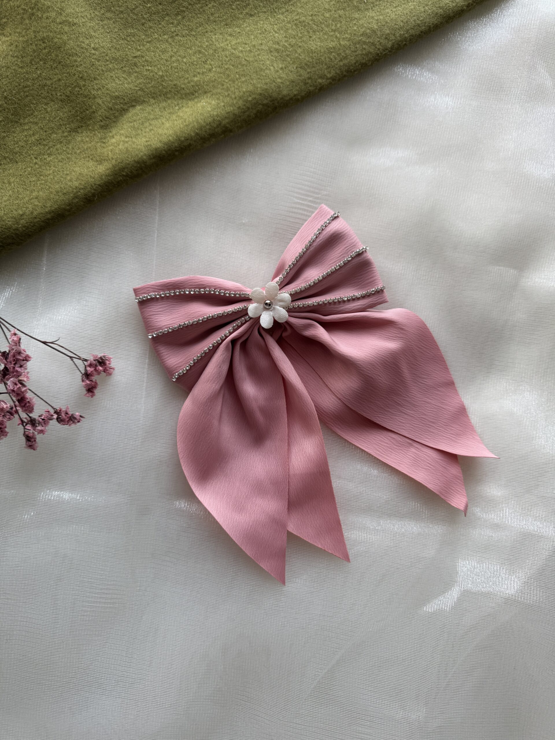 Be the first to review “Studded Hair Bow (pink with pearls)” Cancel reply